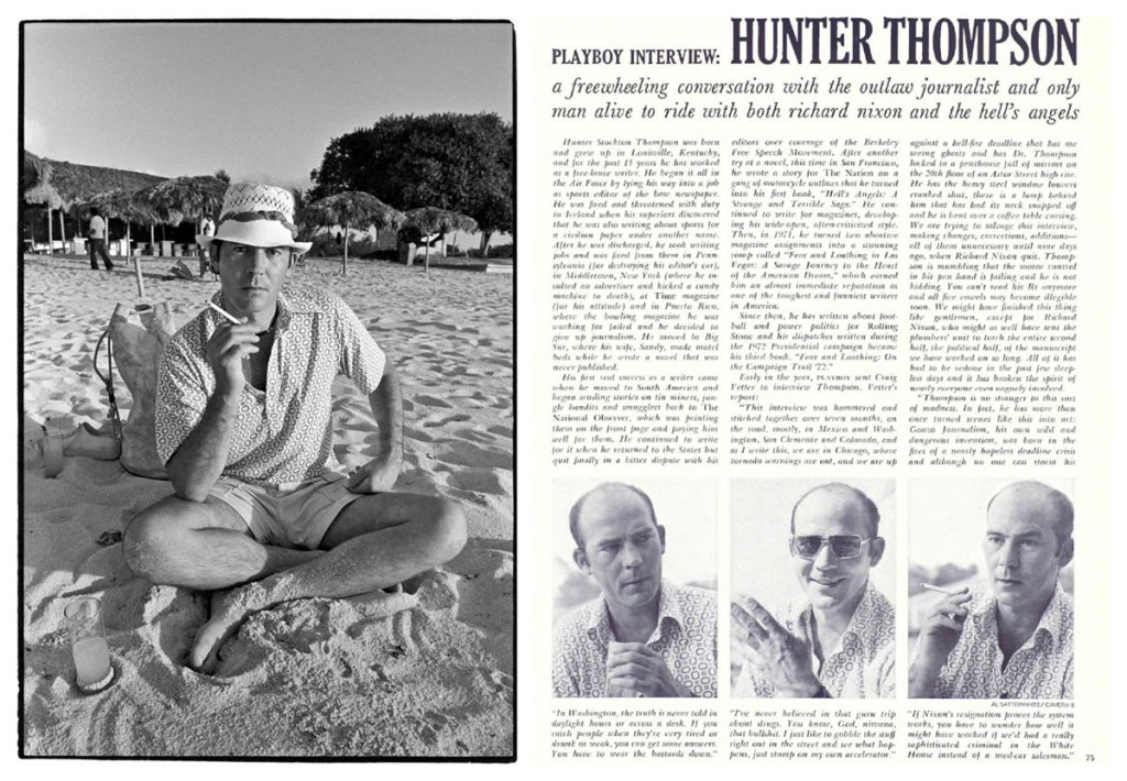 THOMPSON: I’ m not a reporter, I’m a writer. Nobody gives Norman Mailer this kind of shit. I’ve never tried to pose as a goddamn reporter. I don’t defend what I do in the context of straight journalism, and if some people regard me as a reporter who’s gone bad rather than a writer who’s just doing his job— well, they’re probably the same dingbats who think John Chancellor’s an acid freak and Cronkite is a white slaver.
